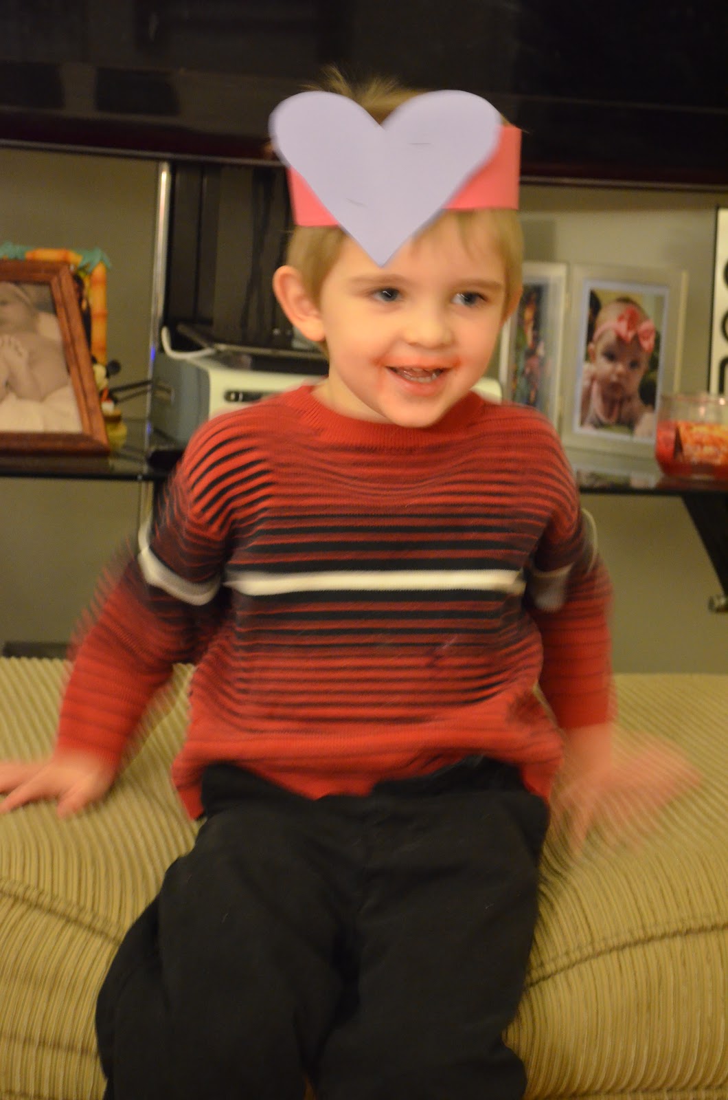 As dinner was finished and the kids helped with the after dinner chores, I could hardly contain my excitement. I had an interesting game planned, a game that I am calling the Valentine's Hot Seat. As soon as the kitchen was clean, we moved to the living room and I explained how this "game" would work. I made two silly little Valentine's headbands. Each person would have an opportunity to wear the headband and sit in the center of the room while the rest of us shared at least one reason why we love the one in the "Hot Seat". It was so sweet and so much fun. They were thrilled to sit in the center of the room and giggled and grinned while we shared what we loved so much about each person. My favorite response was Christopher who humbly smiled and said "thank you" after each loving compliment.